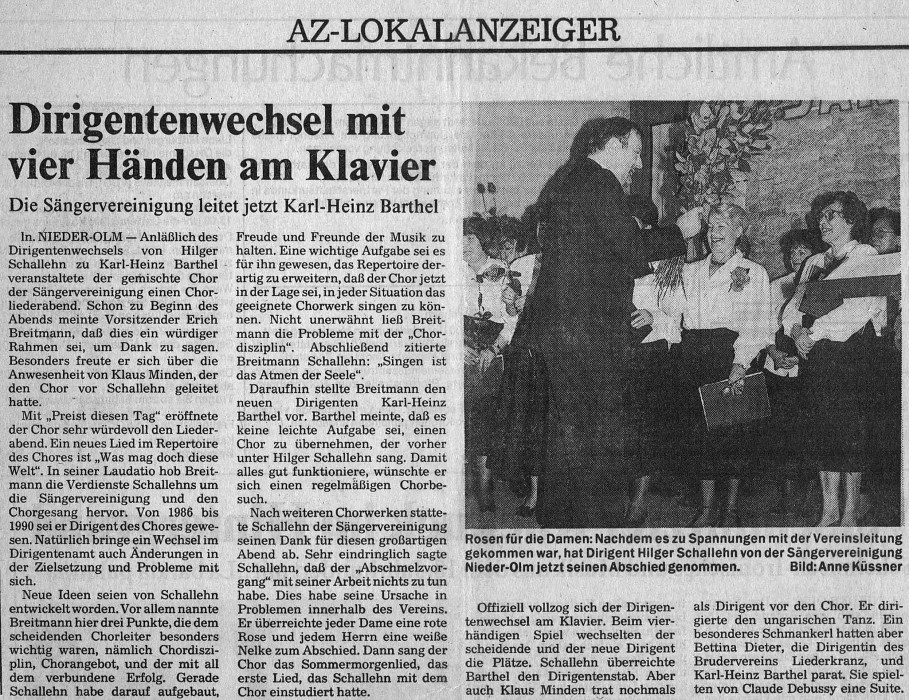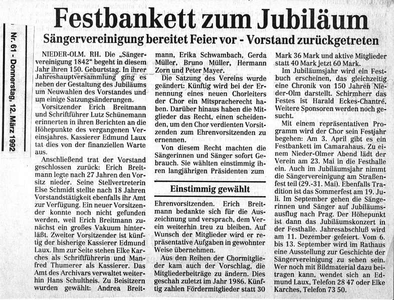 Kapellmeister Karl-Heinz Barthel, zugesprochen. In der Generalversammlung vom 06.03.92 sollte turnusgemäß