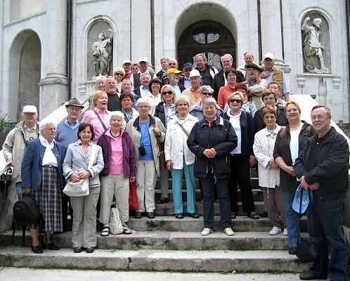 Die vielen Museen, besonders das Mittelalterliche Kriminalmuseum zeugt von einer im Mittelalter nicht immer "heilen Welt". Einige Reiseteilnehmer besuchten die St.-Jakobs-Kirche mit ihrem weltberühmten Hochaltar von Tilman Riemenschneider. Rothenburg liegt malerisch auf einem Steilrand oberhalb der Tauber an der Romantischen Straße und wird jährlich von rund 2,5 Millionen Tagesgästen besucht. Nach der Mittagspause ging die Weiterfahrt nach Creglingen ob der Tauber. Die dort ab dem 14. Jahrhundert erbaute Herrgottskirche birgt in ihren Mauern den Marien-Altar, der ebenfalls von Tilmann Riemenschneider geschaffen wurde. Nach einem spontanen Gesang des Kanons "Dona nobis pacem", und einer stillen Einkehr der Besucher ging die Reise weiter über Bad-Mergentheim nach Tauberbischofsheim zur Kaffeepause. Fast wäre es zu einem "Verlust" von zwei Reiseteilnehmerinnen gekommen, die den Weg zum Busparkplatz nicht mehr zum vereinbarten Zeitpunkt fanden. Diese Zwangspause wurde mit Getränken aus der Bordverpflegung überbrückt. Die Weiterfahrt ging durch den Odenwald über Walldürn, Amorbach und Michelstadt. Abschluss der Reise war in Oberkainsbach bei Musik und Tanz. Gegen 21:30 Uhr waren die Reisenden wieder wohlbehalten zuhause. Der Chor hat zuvor noch alle mitreisenden Gäste zum bevorstehenden Konzert in der Kath. Kirche St. Georg Nieder-Olm am Sonntag, 24. Oktober 2010, um 17:00 Uhr, eingeladen. Text/Foto: Lx. |