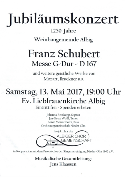 und am 13.05. in der ev. Kirche in Albig aufgeführt wird.