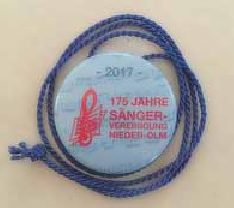 Regine Matz-Möhle (NOCV) hat den 175. Geburtstag der Sängervereinigung Nieder-Olm als Motiv gewählt. Die Plakettchen, in einer