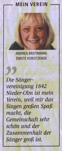 Weitere Infos unter: www.saengervereinigung-nieder-olm.de. Je.Kl.